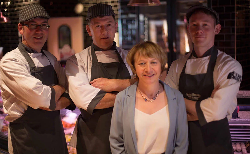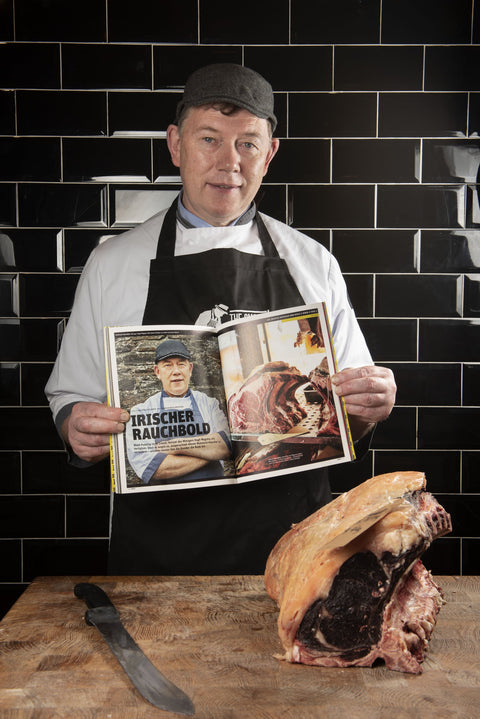 Known throughout Ireland as a leading member of the craft butcher fraternity, Hugh Maguire has won numerous awards for his sausages, dry-cured rashers and black & white puddings over the years. Hugh has a love and passion for excellent food and greatly respects Ireland’s raw, basic ingredients. After building up a long and established career working in many high-class butcher shops in 1991, he opened his first Butcher Shop in Navan, Co. Meath, with the philosophy of providing the best locally sourced meat at value to his loyal customer base. In 2016, Hugh purchased a smokehouse in Navan, where he began smoking some of his own products and, drawing on his award-winning traditional black pudding, the smoked black pudding and The Smokin’ Butcher were born.